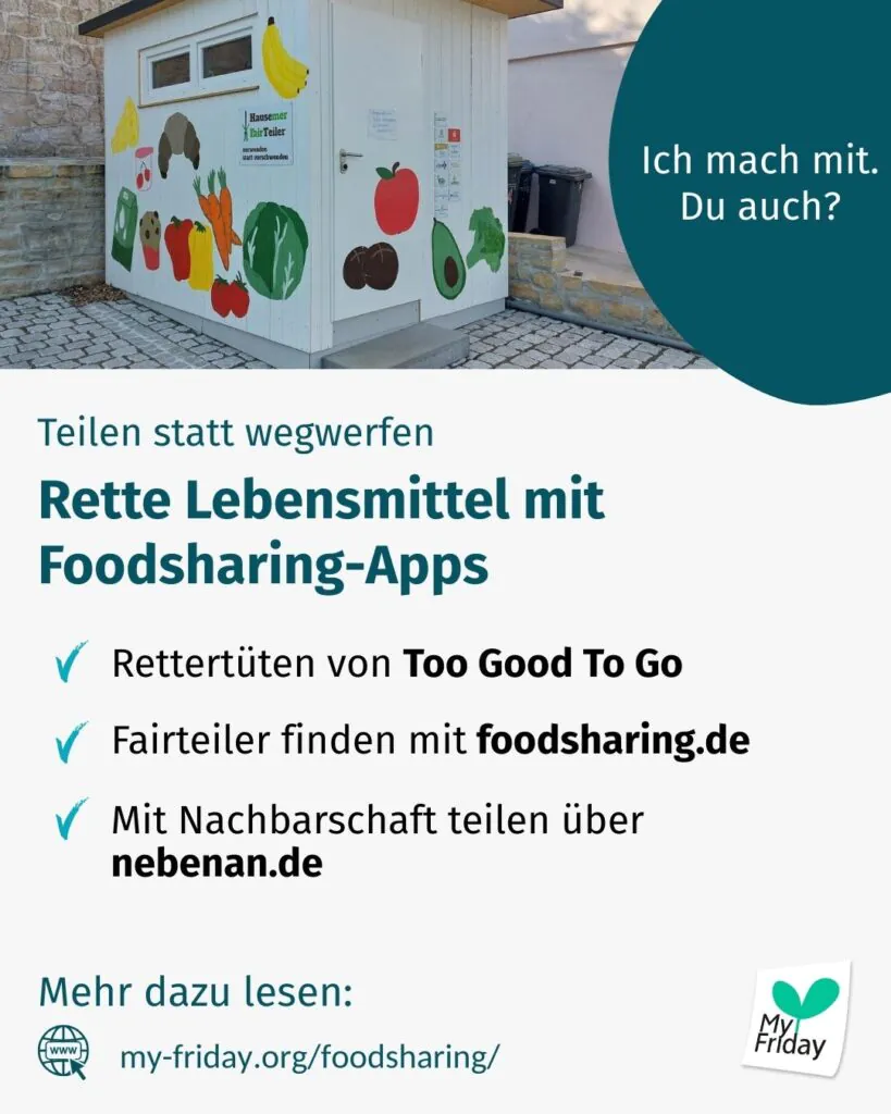- Und in deiner Nachbarschaft kannst du Lebensmittel mit anderen Menschen teilen.